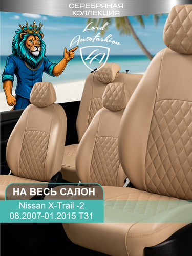 Чехлы на сиденья Ниссан Икс - Треил - 2 Т31 Лорд Авто 5 мест с 2007 - 2015 Кроссовер / Nissan X-Trail - 2 T31 ( спинка заднего ряда 60/40 раздельная ), экокожа бежевые Турин Ромб