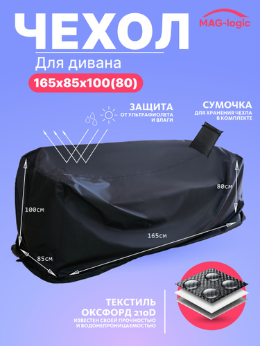 Чехол для садового 2-х местного дивана 165х85х100(80) черный+серебристый непромокаемый