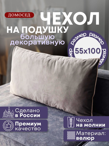 Чехол на диванную подушку на молнии из велюра 100х55