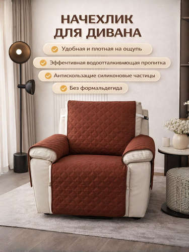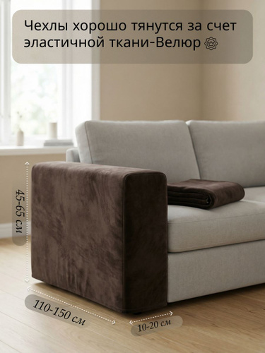 Чехол на подлокотники и подушки-спинки дивана до 150 см, коричневый, 1 штука