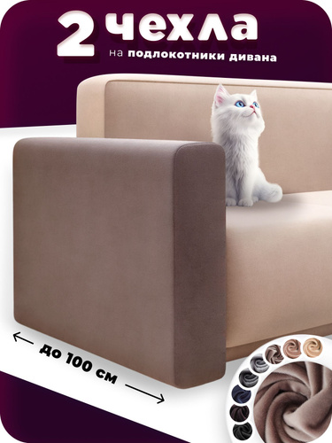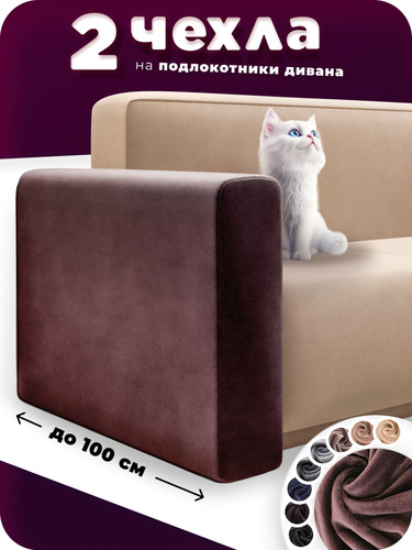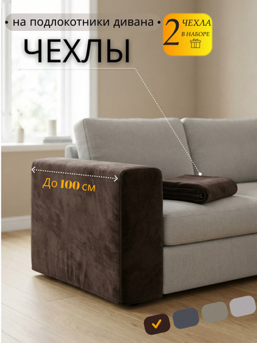 Чехол на подлокотник дивана 2шт. защитные чехлы на подлокотники, на диван, коричневый, накидка, велюр 100-65 см