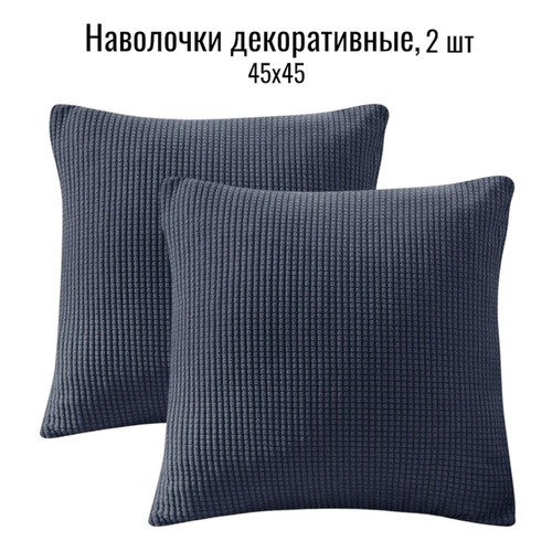 Наволочка декоративная, чехол на подушку, 45х45 см, темно-серая, на молнии, 2 штуки