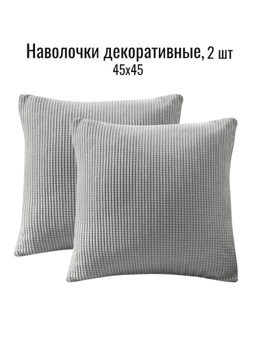 Наволочка декоративная, чехол на подушку, 45х45 см, серая, на молнии, 2 штуки