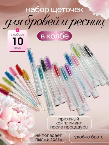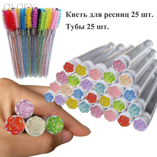Щеточки для бровей и ресниц в индивидуальной колбе (тубе), Хрустальные розы, 25 шт.