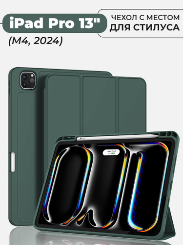 Чехол для планшета iPad Pro 13" (M4, 2024) с местом для стилуса, темно-зеленый