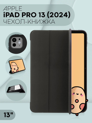 Чехол на iPad Pro 13 2024 (силиконовый чехол-книжка на Айпад Про 13 2024 года с диагональю 13 дюймов) с функцией подставки и фиксацией крышки на магнитах, черный