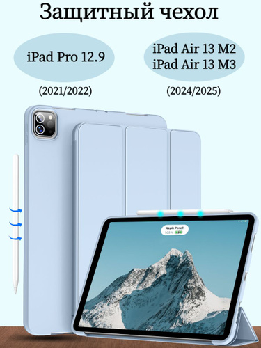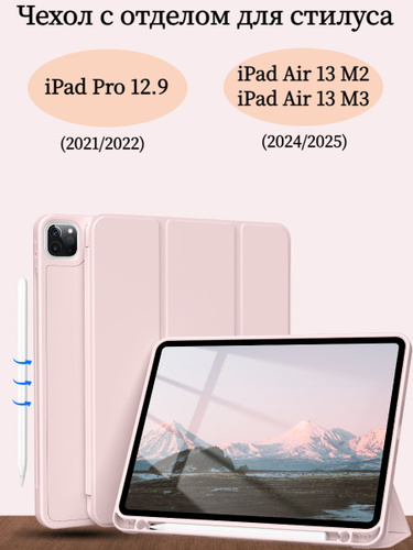 Чехол для iPad Air 13 (2024/2025), iPad Pro 12.9 (2021/2022) с отсеком для стилуса