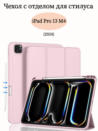 Чехол для планшета iPad Pro 13" (M4, 2024) с местом для стилуса, розовый