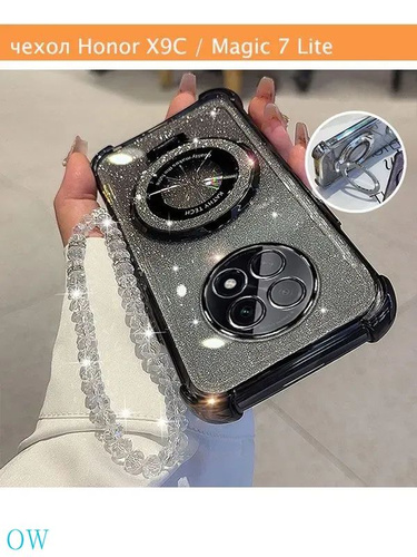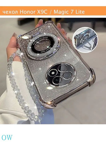 Чехол на Хонор X9C / Магик 7 Lite блестящий силиконовый для Honor Magic 7 Lite / X9C противоударный с Кристальный шнурок