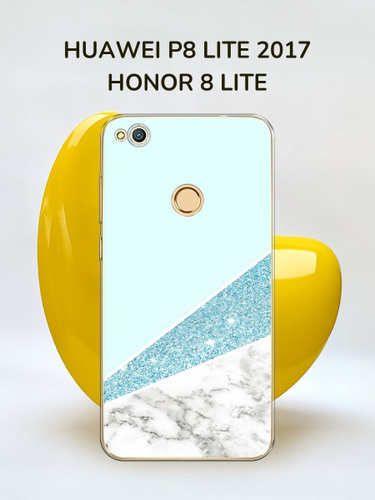 Силиконовый чехол на Honor 8 Lite/Huawei P8 Lite / Хонор 8 Lite/Хуавей P8 Lite 2017 "Мрамор с голубыми блестками"