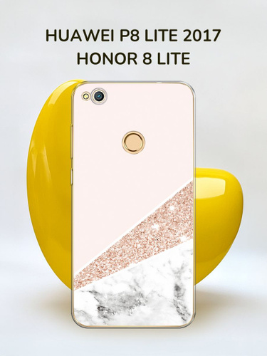 Силиконовый чехол на Honor 8 Lite/Huawei P8 Lite / Хонор 8 Lite/Хуавей P8 Lite 2017 "Блестящий розовый мрамор"