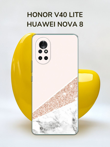 Силиконовый чехол на Honor V40 Lite/Huawei Nova 8 / Хонор В40 Лайт/Хуавей Нова 8 "Блестящий розовый мрамор"