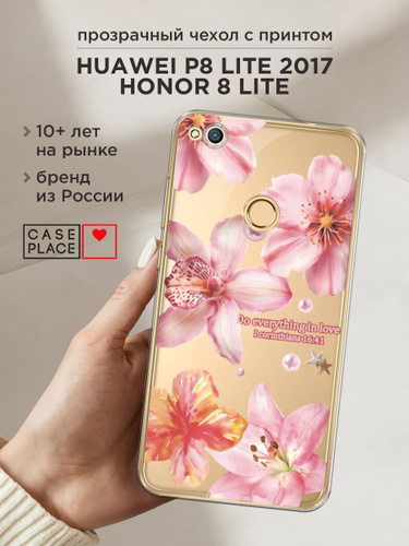 Чехол на Хонор 8 Lite / Хуавей P8 Lite 2017 с цветочками