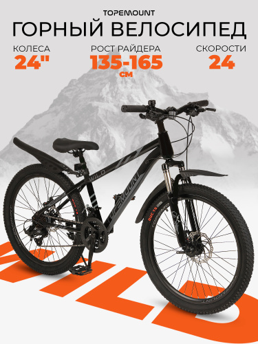 Велосипед подростковый горный 24", детский городской скоростной, для мальчиков, для девочки, дисковые тормоза, 8 лет 9 лет 10 лет, TOPEMOUNT WILD