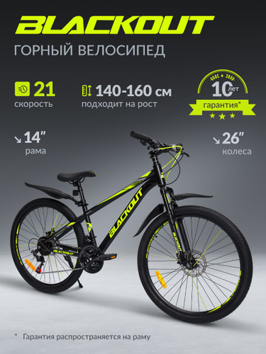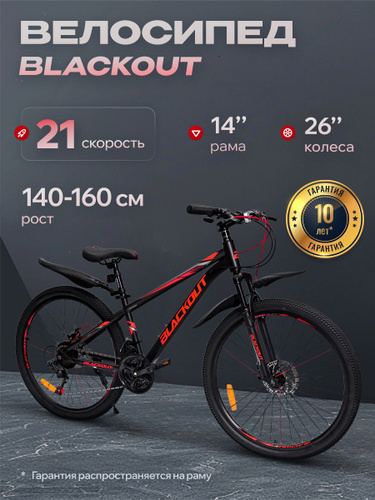 Велосипед подростковый горный 26" рама 14", взрослый городской шоссейный, для девочки и для мальчиков, дисковый тормоз, матовый цвет BLACKOUT (коробка)