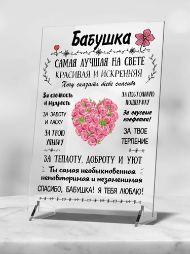 Подарок бабушке на день рождения, юбилей. Открытка постер из акрилового стекла "Бабушка", 20х14 см