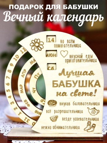 Вечный календарь из дерева Лучшей бабушке, подарок для бабушки на день рождения, пожилого человека, Новый год