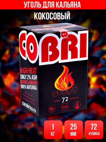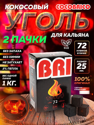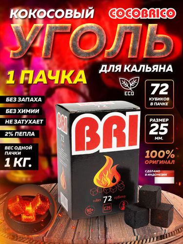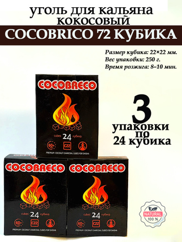 Уголь для кальяна кокосовый Cocobrico, 72 шт (кубики 22х22мм)