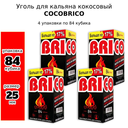Уголь для кальяна кокосовый Cocobrico, 4 упаковки по 84 шт