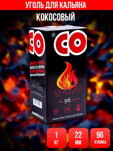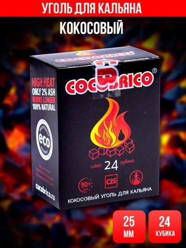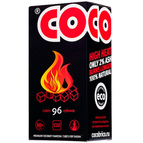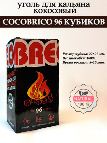Уголь для кальяна кокосовый Cocobrico, 96 шт (кубики 22х22мм)