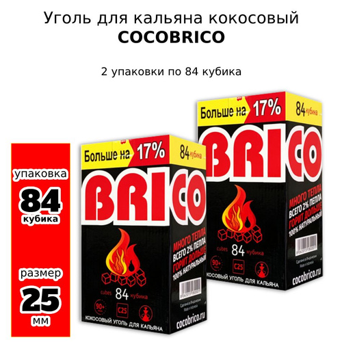 Уголь для кальяна кокосовый Cocobrico, 2 упаковки по 84 шт