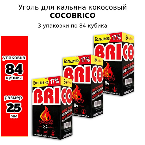 Уголь для кальяна кокосовый Cocobrico, 3 упаковки по 84 шт