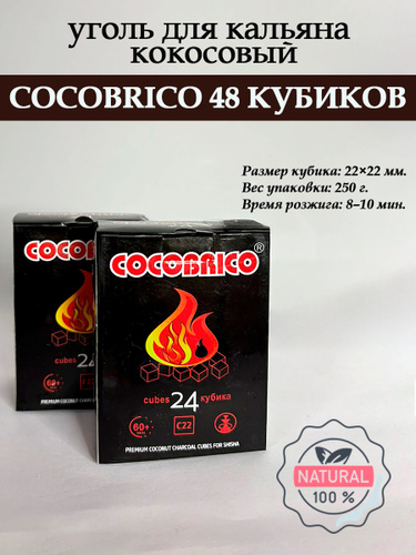Уголь для кальяна кокосовый Cocobrico, 48 шт (кубики 22х22мм)
