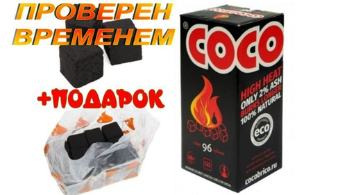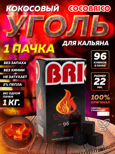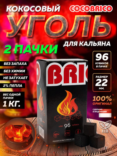 Уголь для кальяна кокосовый Cocobrico 96 куб, натуральный Кокобрико 22мм (22*22*22) + ПОДАРОК
