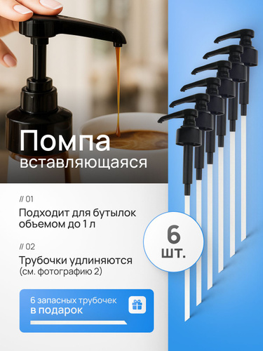 Помпа-дозатор для жидкостей, 6 шт, черный цвет / вставляющаяся для бутылок 1 л универсальная насадка для сиропов для кофе и коктейлей barinoff (баринофф), monin (монин), spoom (спум) и др.