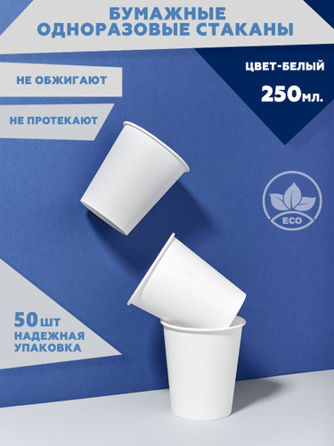 Набор одноразовых стаканов Clever Paper, объем 250 мл, 50 шт, цвет белый, бумажные, однослойные для кофе, чая, холодных и горячих напитков