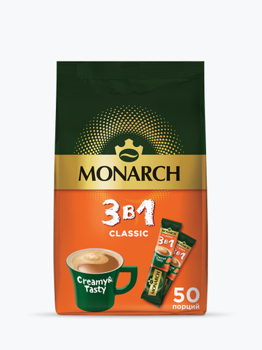 Кофейный напиток Monarch Классик, 3 в 1, растворимый в стиках, 50 шт x 13,5 г