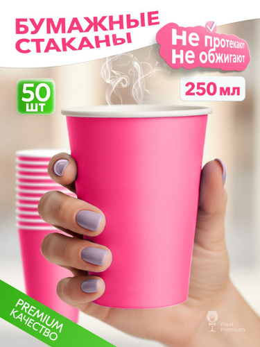 Стаканы одноразовые бумажные 250 мл 50 шт, стаканчики розовые для кофе