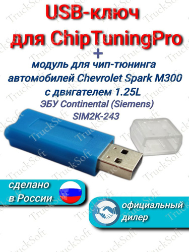 USB-ключ для ChipTuningPRO 2025+ модуль для чип-тюнинга автомобиля Chevrolet Spark M300 с двигателем 1.25L, ЭБУ Continental (Siemens) SIM2K-243.