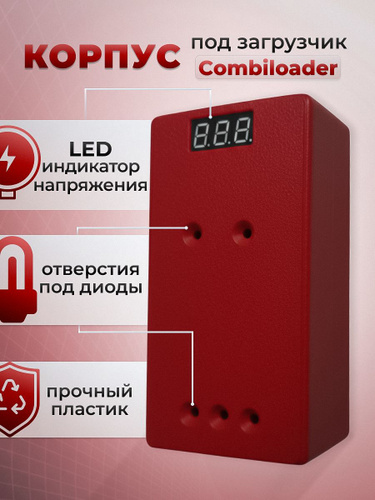 Пластиковый корпус для загрузчика Combiloader с вольтометром и USB хабом на 3 порта. Красный.