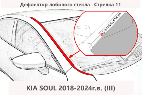 Водосток (дефлектор) лобового стекла Стрелка11 для Kia Soul 2019-