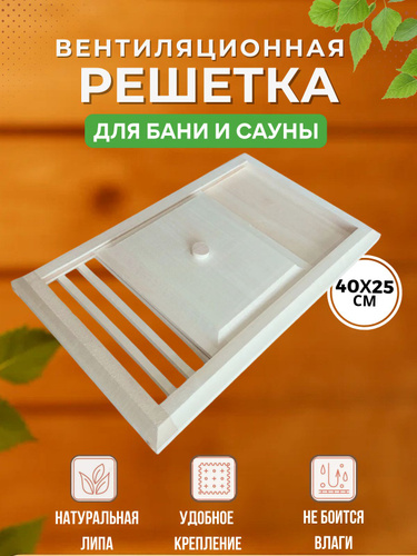 Решетка вентиляционная для бани и сауны деревянная Задвижка из липы декоративная 400х250мм