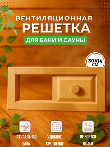 Решетка вентиляционная для бани и сауны деревянная Задвижка из липы декоративная 140х300мм