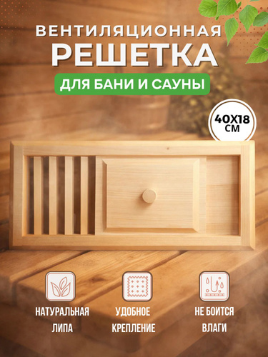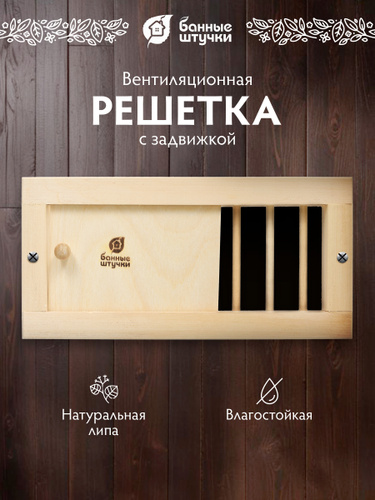 Решетка деревянная с задвижкой для вентиляции Аксессуары для бани и сауны Липа Банные штучки 120х340 мм