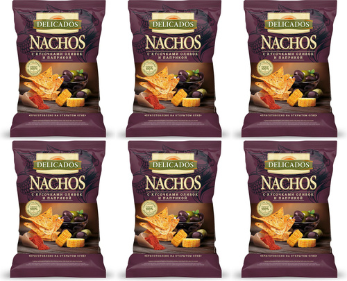 Начос кукурузные Delicados Nachos с кусочками оливок и паприкой, комплект: 6 упаковок по 150 г