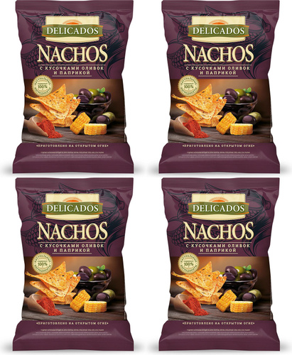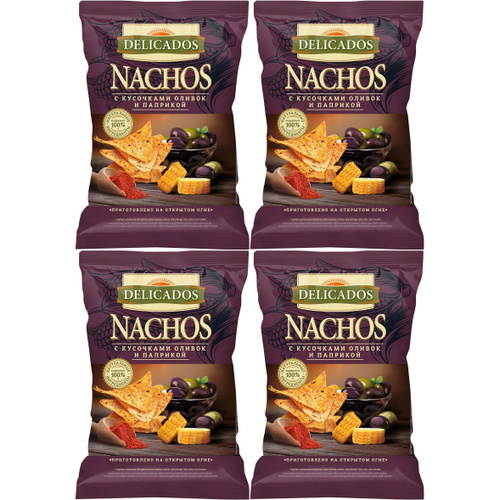 Начос кукурузные Delicados Nachos с кусочками оливок и паприкой 150 г, набор: 4 штуки