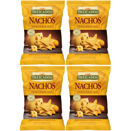 Чипсы кукурузные Delicados Nachos Нежнейший сыр 150 г, набор: 4 штуки