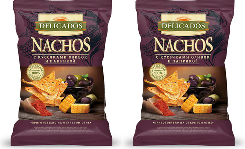 Начос кукурузные Delicados Nachos с кусочками оливок и паприкой, комплект: 2 упаковки по 150 г