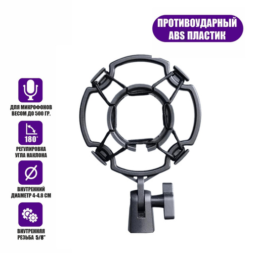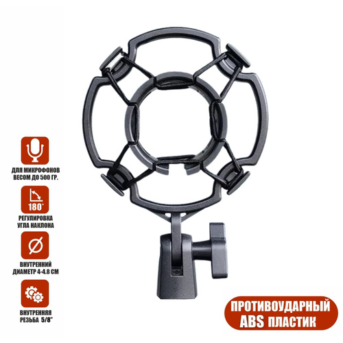 Аксессуар для микрофона универсальный / Держатель микрофона паук пластиковый противоударный черный