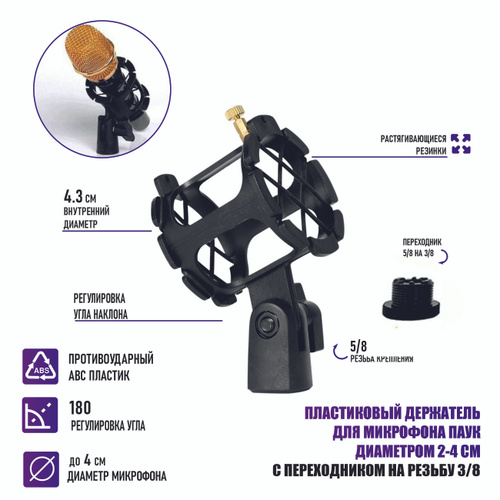 Держатель для микрофона паук пластиковый противоударный