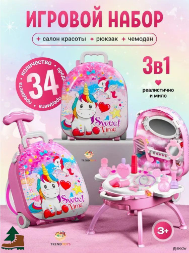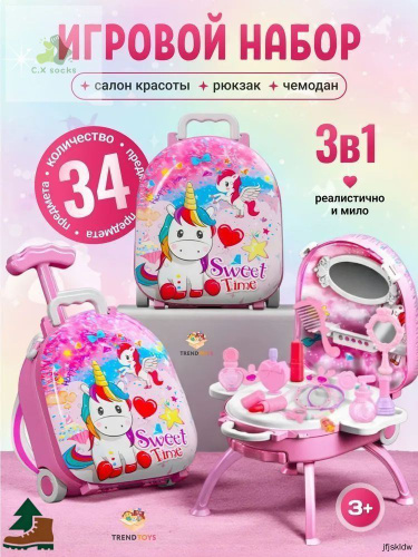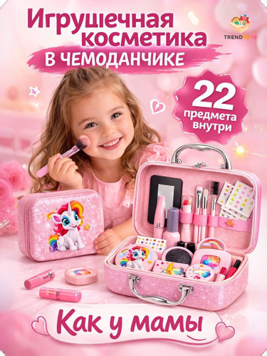 Детский набор игрушечной косметики в чемодане, детские игрушки для девочек, подарок девочке 4+,5+,6+,7+