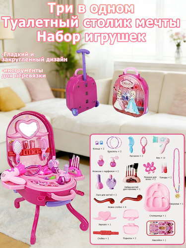 Детский туалетный столик Три в одном , набор косметических игрушек для девочек в чемодане