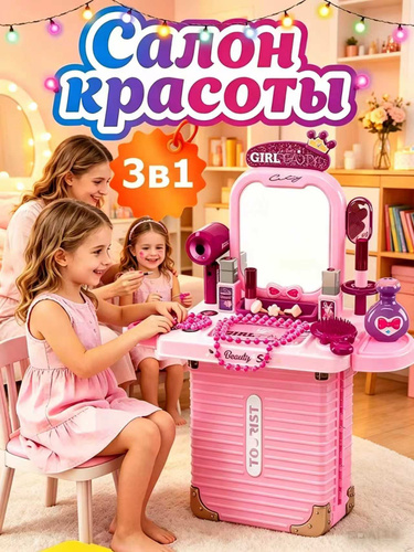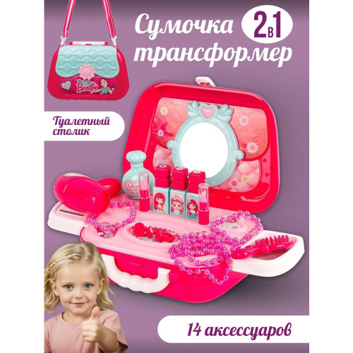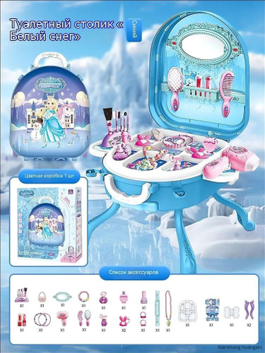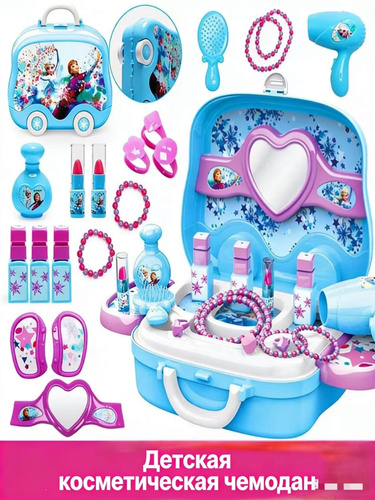 Детский косметический набор Лиза и Эльза, Трансформирующийся туалетный столик 3 в 1: Чемодан, Сундук и Столик Игрушка для девочек от 3 лет Развивающие ролевые игры