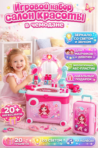 Игровой набор в чемодане "Салон красоты" для девочек, чемоданчик с косметикой для сюжетно-ролевых игр в подарок