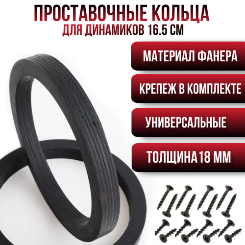 Проставочные кольца универсальные для динамиков (акустики) 16.5-17.5см. ФАНЕРА 18мм. проставки 2шт. Посадочный 150 мм. Крашеные для долговечности
