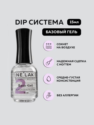 NELAK гель база дип система для ногтей без лампы Basic Gel 15мл / Dip-система для ногтей